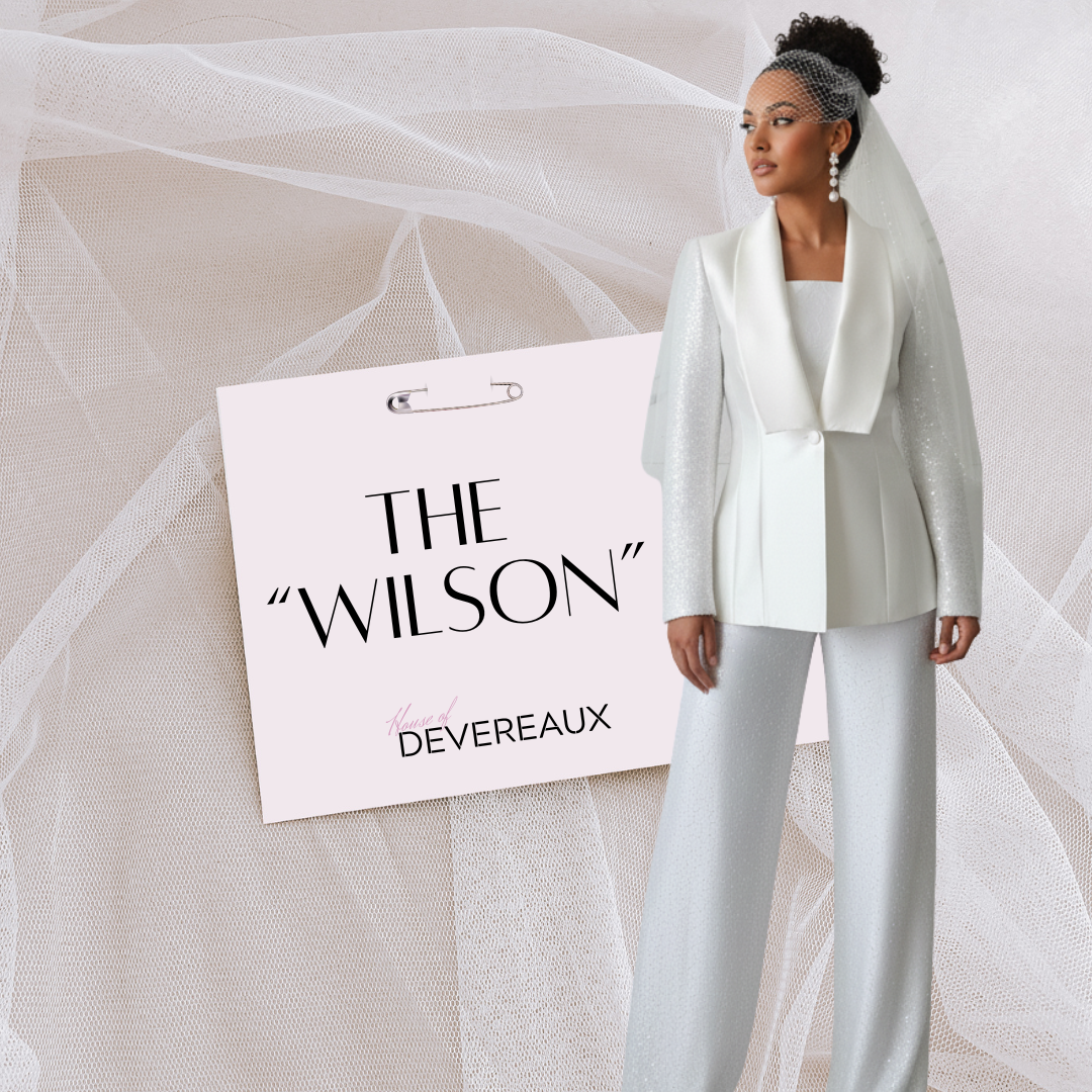 Introducing the "Wilson"- created through love, legacy and luxury. Our interpretation of the bridal suit in a beautiful way for your big day.